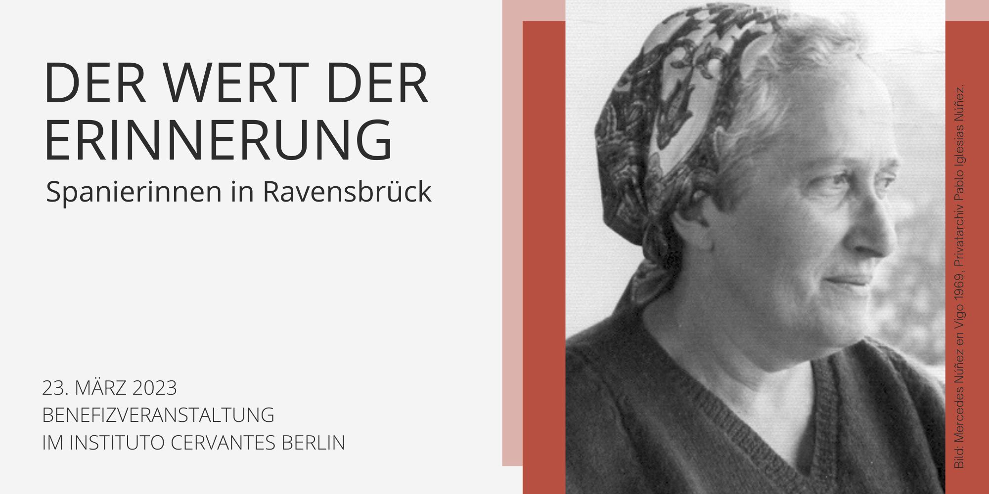 Posted on Tuesday January 13th, 2026Tuesday January 13th, 2026 by « All Events This event has passed. (Deutsch) Benefizveranstaltung: Der Wert der Erinnerung. Spanierinnen im Frauen-Konzentrationslager Ravensbrück 23. March 2023, 20:30 - 23:00 frei « 1. Spanientreff 2023 (Deutsch) Internationales Jahrestreffen des KFSR in Berlin » Sorry, this entry is only available in Deutsch. Add to calendar Google Calendar iCalendar Outlook 365 Outlook Live Details Date: 23. March 2023 Time: 20:30 - 23:00 Cost: frei Website: https://www.eventbrite.de/e/der-wert-der-erinnerung-el-valor-de-la-memoria-tickets-547276106567 Organizer Instituto Cervantes Berlin in Zusammenarbeit mit der Gedenkstätte Ravensbrück Venue Instituto Cervantes Berlin – Das spanische Kulturinstitut Rosenstraße 18 Berlin, Berlin 10178 Deutschland + Google Map