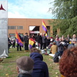 Weiterhin zu nennen sind gemeinsame Veranstaltungen mit der „Plattform gegen die Straflosigkeit des Franquismus’“ (Plataforma contra la impunidad del franquismo), die an der Puerta del Sol als auch im Ateneo stattfanden. Einen würdigen Abschluss bildete die Kundgebung am Denkmal für die Interbrigaden in der Universität Complutense, mit bis zu 200 Teilnehmern. Dabei war die junge Generation nicht nur stark unter den Zuhörern anzutreffen, sondern wurde auch – wie bereits in den „Paseos“ – in die Durchführung einbezogen. Es ist für mich jedes Mal aufs Neue aufregend, an diesem Ort zu sprechen. Es gibt danach oft noch Fragen, Meinungen, Gespräche. Besonders die Information zur Geschichte der „Spanischen Allee“ in Berlin, auf die ich kurz eingegangen bin, hat Erstaunen und auch Empörung hervorgerufen. Spontan kam der Vorschlag, dass „Straße der Spanischen Republik“ ein würdiger Name wäre.