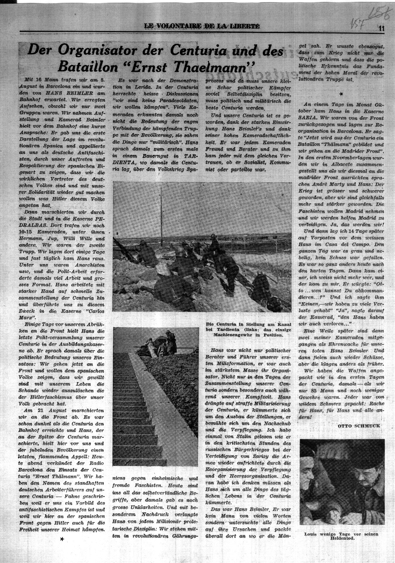 [1] Artur Dorf, Der Tod Hans Beimlers, in: Brigada Internacional, Berlin (DDR) 1974, S. 147