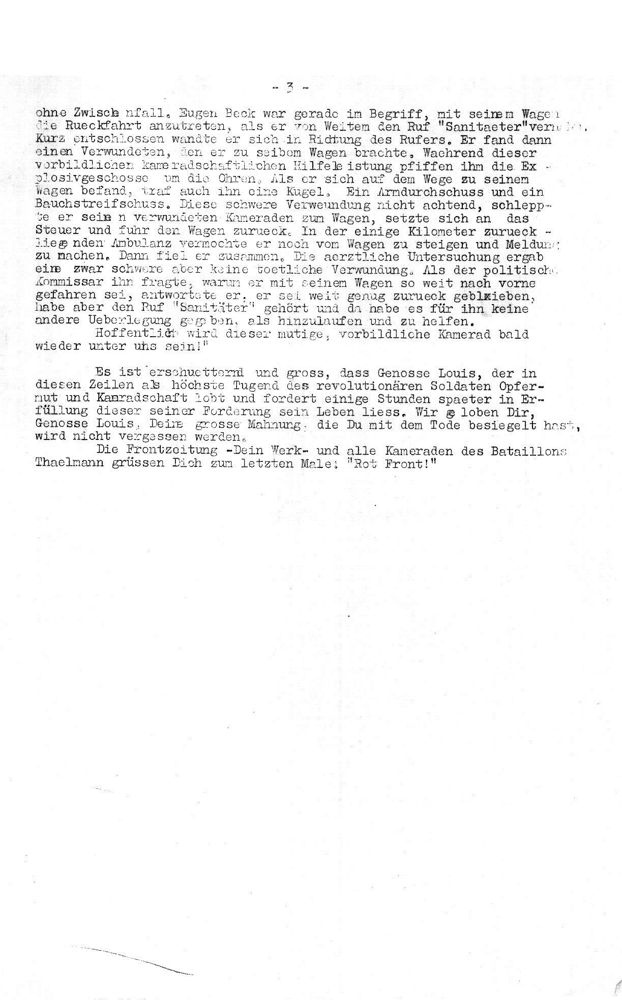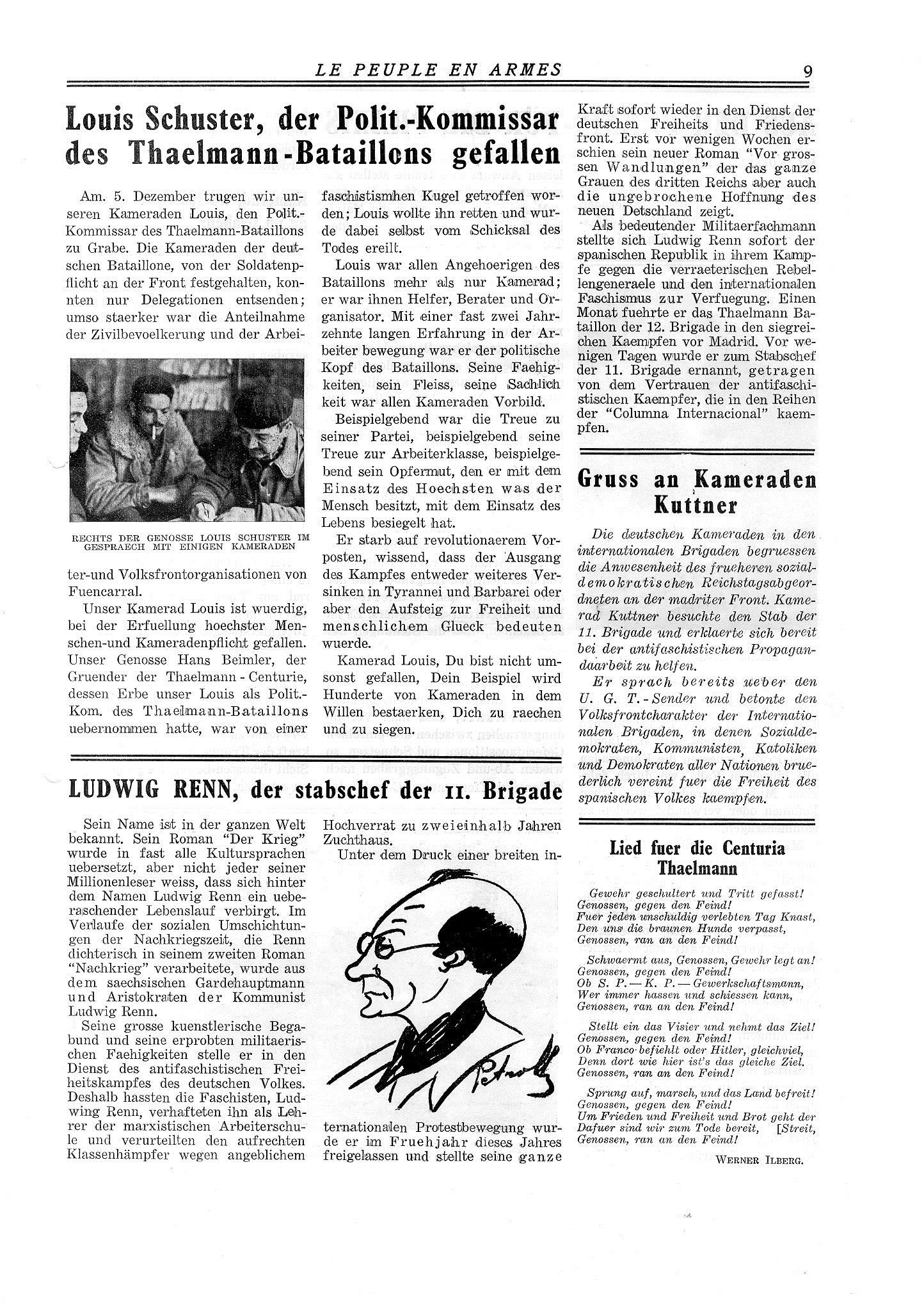 Aus der Zeitschrift des 3. Bataillons (Thälmann-Bat.) „Todos unidos“ das vermutlich einzige Spanien-Bild von Franz Vehlow und ein Nachruf von Gustav Regler.