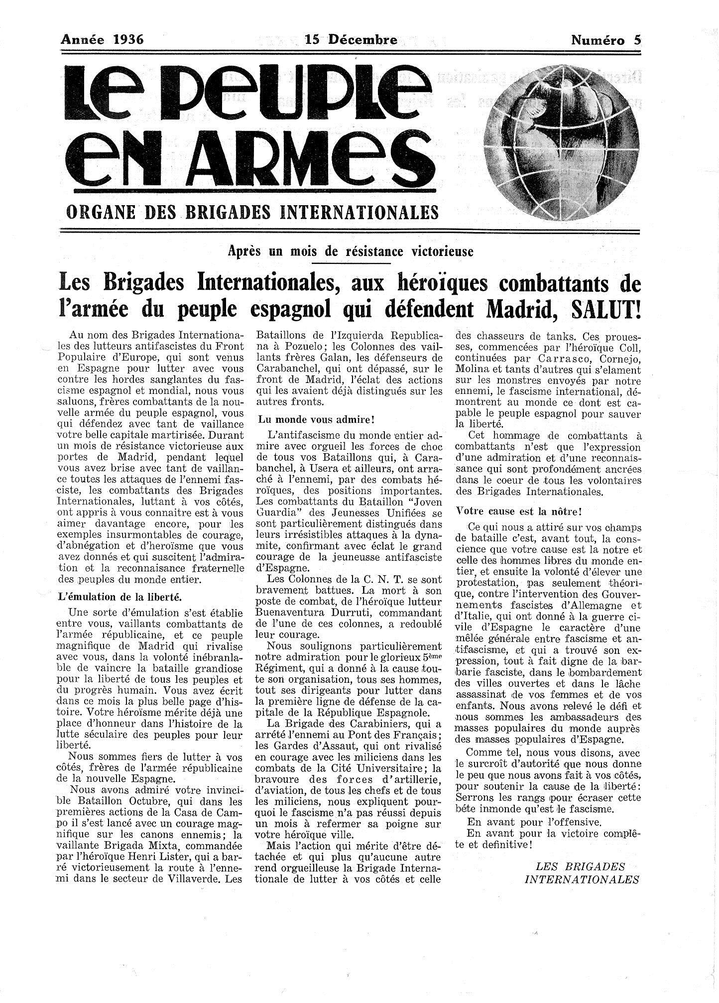 Nachruf auf Franz Vehlow aus „Le peuple en armas“ vom 15. Dez. 1936