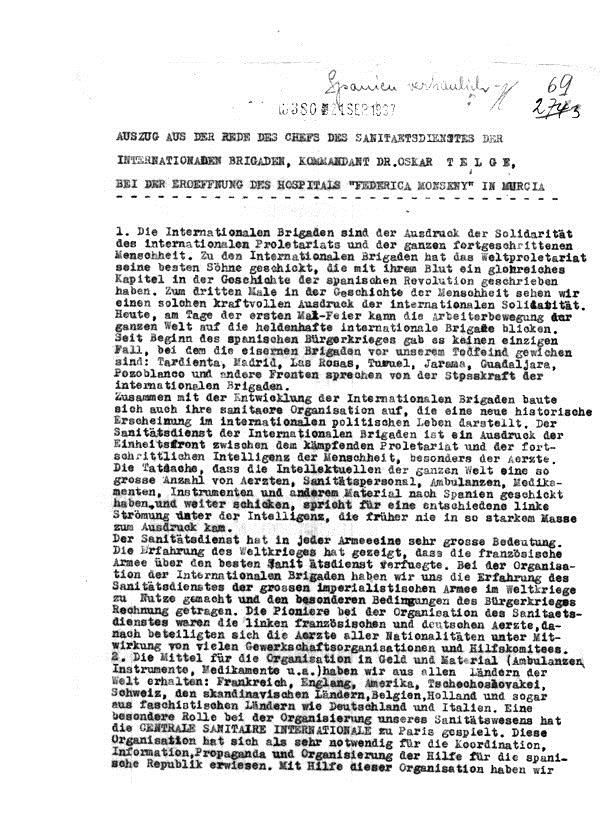 (Deutsch) Fundstück: Auszug aus der Rede des Chefs der Sanitaetsdienstes der Internationalen Brigaden, Kommandant Dr. Oskar Telge bei der Eröffnung des Hospitals “Frederica Montseny” in Murcia. Posted on Thursday June 7th, 2018Thursday June 21st, 2018 by Redaktion KFSR Sorry, this entry is only available in Deutsch. Redaktion KFSR