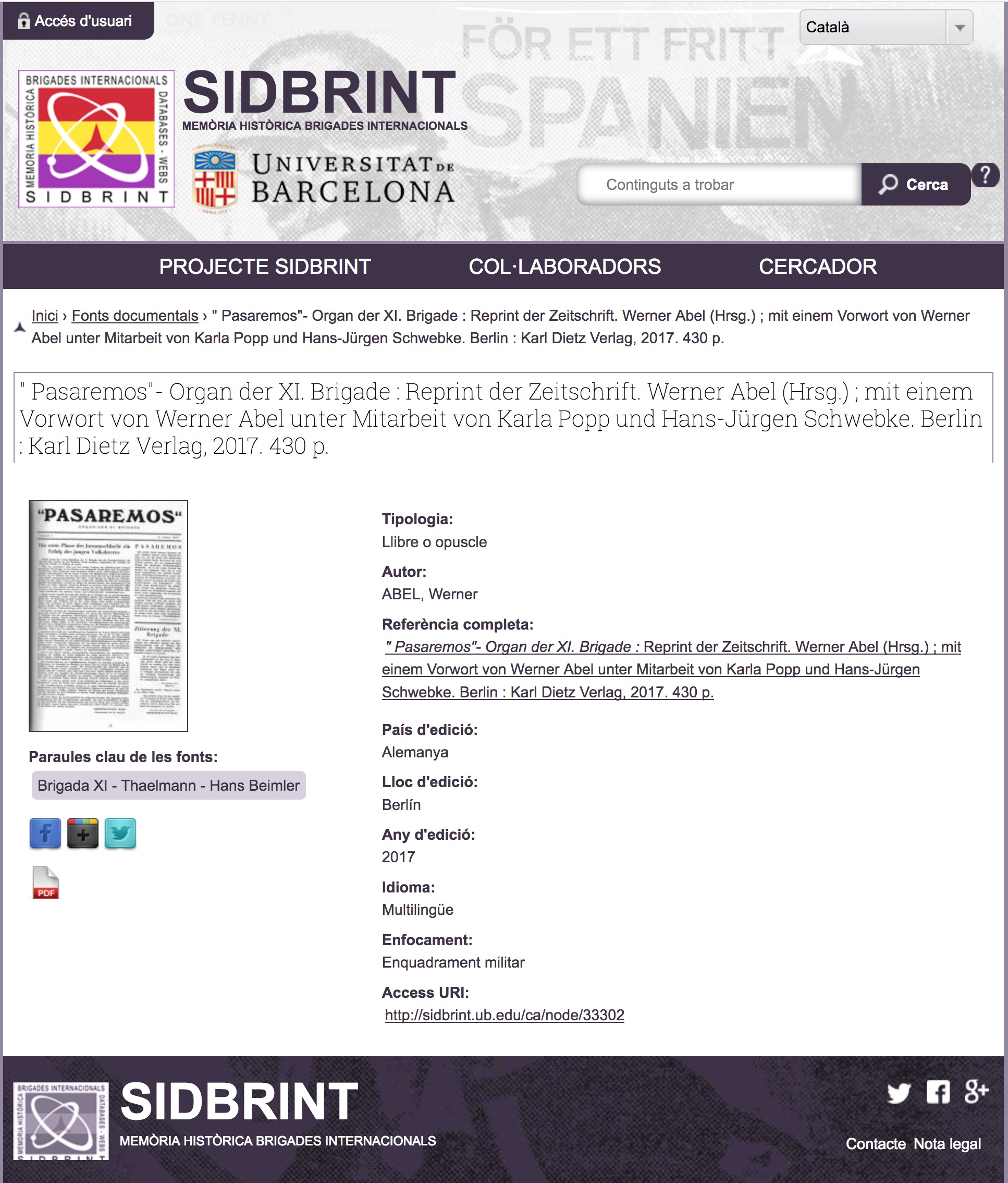 - Pasaremos – Vor kurzem erschien ein großartiger Reprint aller Ausgaben der Zeitung der XI. Internationalen Brigade. Von Gerald Netzl; Wien.