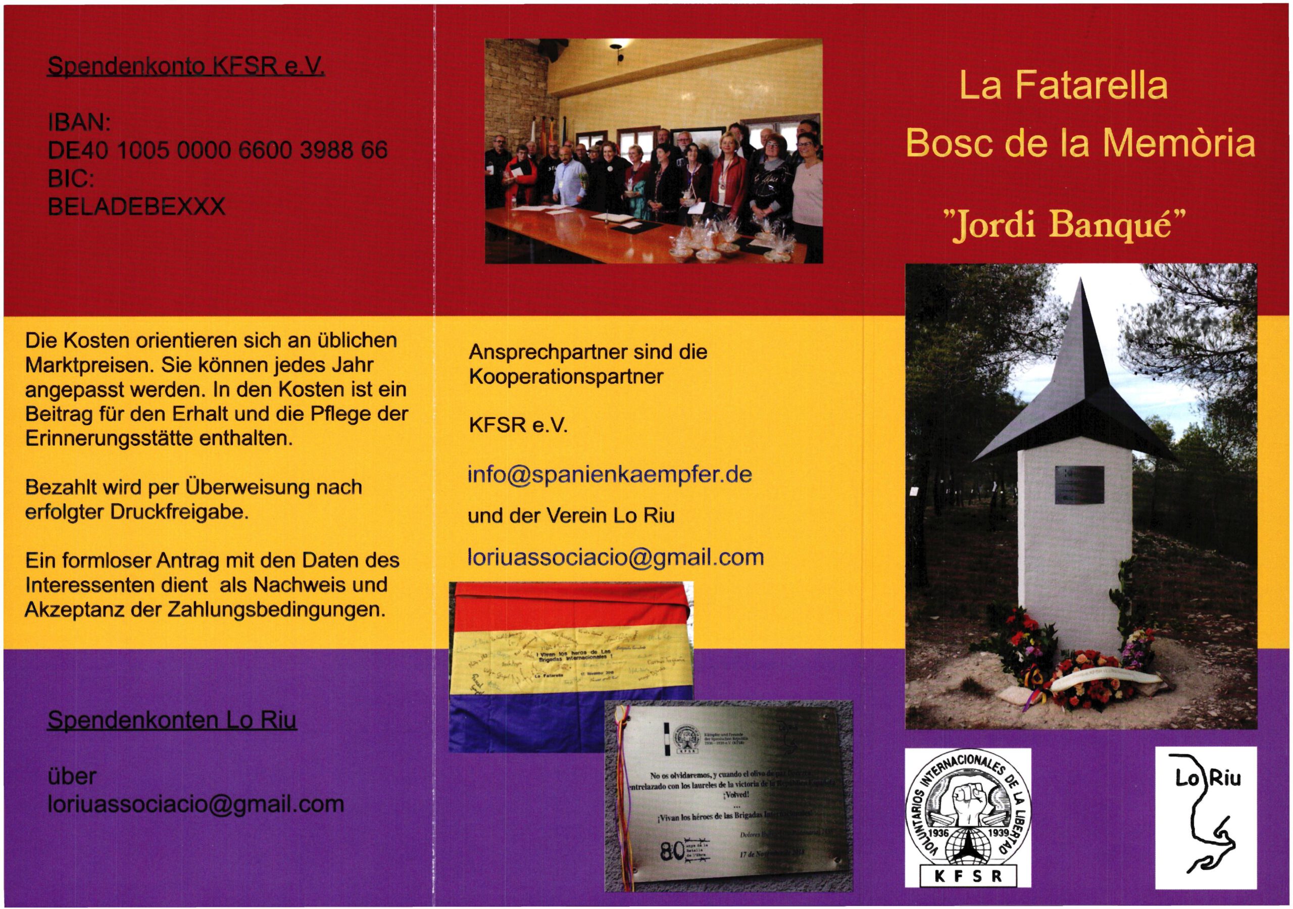 Die Idee zum „Wald der Erinnerung“ entstand Ende der 90iger Jahre im Rahmen eines EU Projekts in Zusammenarbeit mit Repräsentanten der Rathäuser in La Fatarella und Corbera de Ebre sowie dem damaligen internationalen Verein „Tierra de Germanor“ und dem KFSR e.V. Der Wald der Erinnerung befindet sich in La Fatarella, einem Ort in Katalonien in der Region Terra Alta, dem Zentrum der heroischen Kämpfe der Internationalen Brigaden am Ebro.