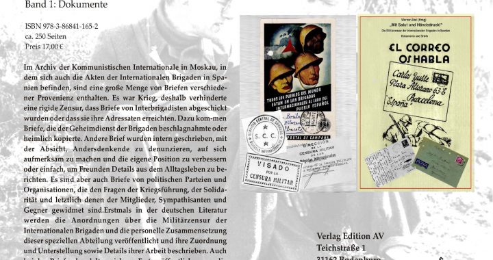 Buchankündigung des Verlags Edition AV Werner Abel (Hrsg.) „Mit Salut und Händedruck – Briefe im Spanischen Krieg“ Im Archiv der Kommunistischen Internationale in Moskau, in dem sich auch die Akten der… Weiterlesen